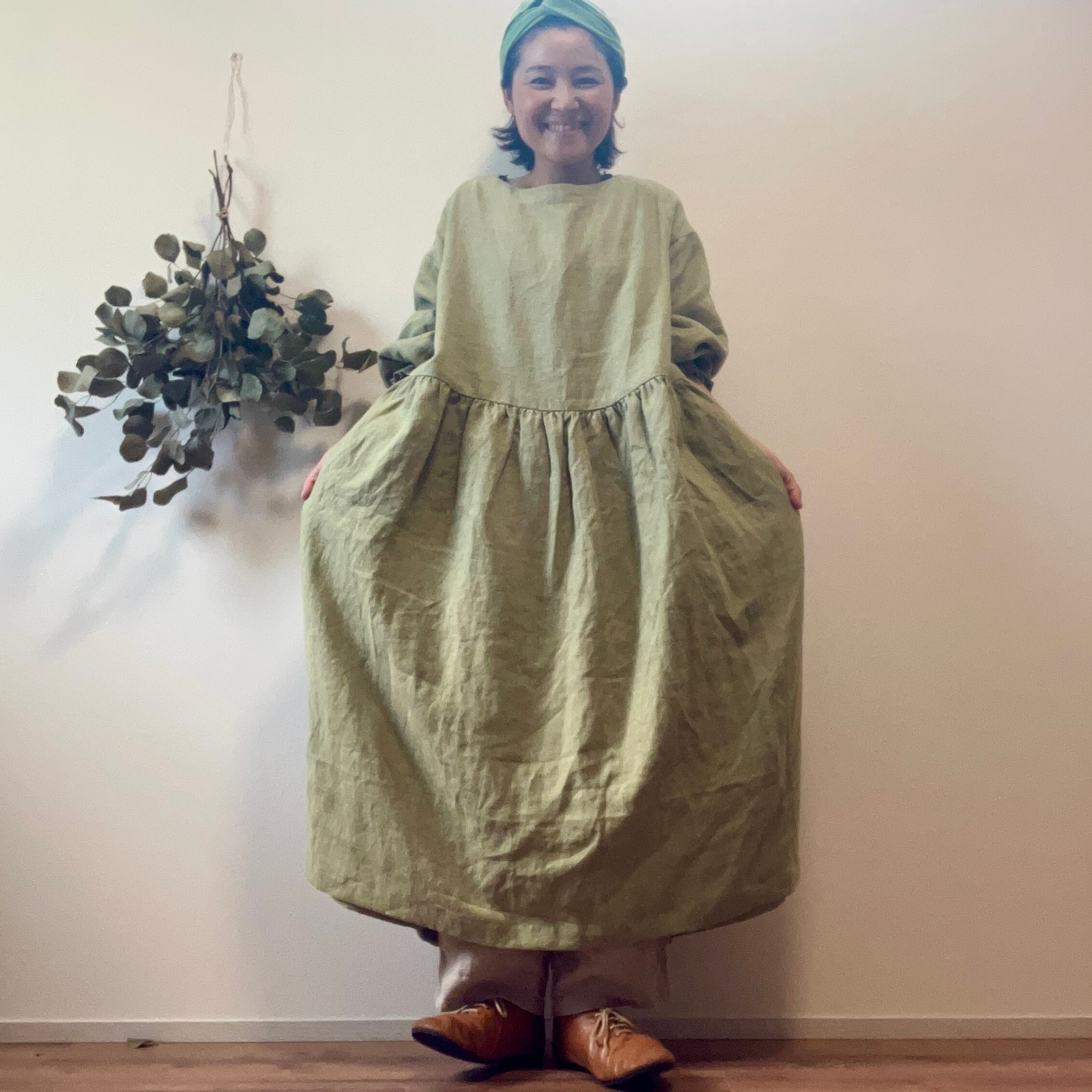 普通サイズ【100丈】秋冬用♡厚手割烹着ワンピース〈抹茶ラテ〉