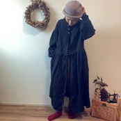 大きめサイズ【100丈】秋冬用♡割烹着ワンピース〈ブラック〉