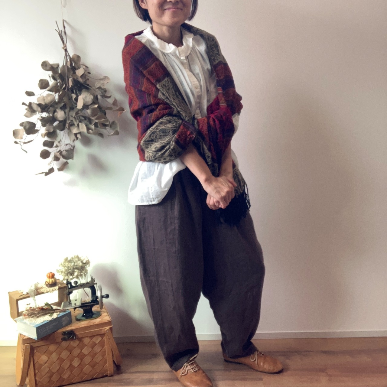 【コクーンパンツ】ウエストゆったり、丈93
