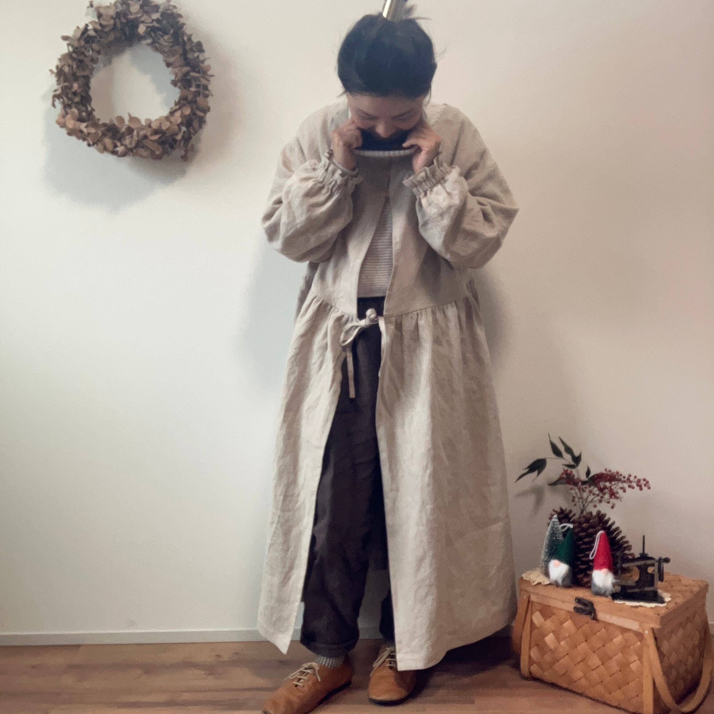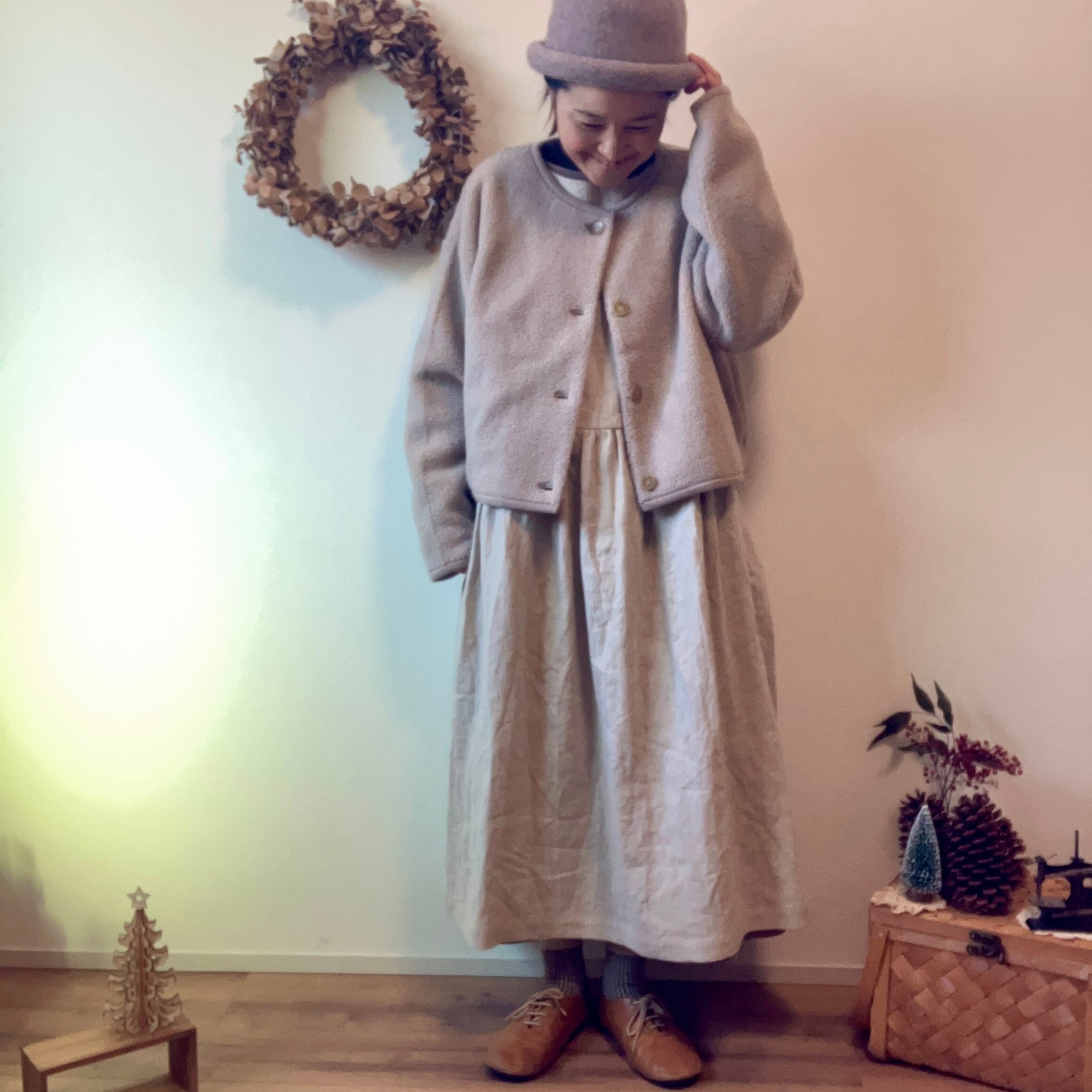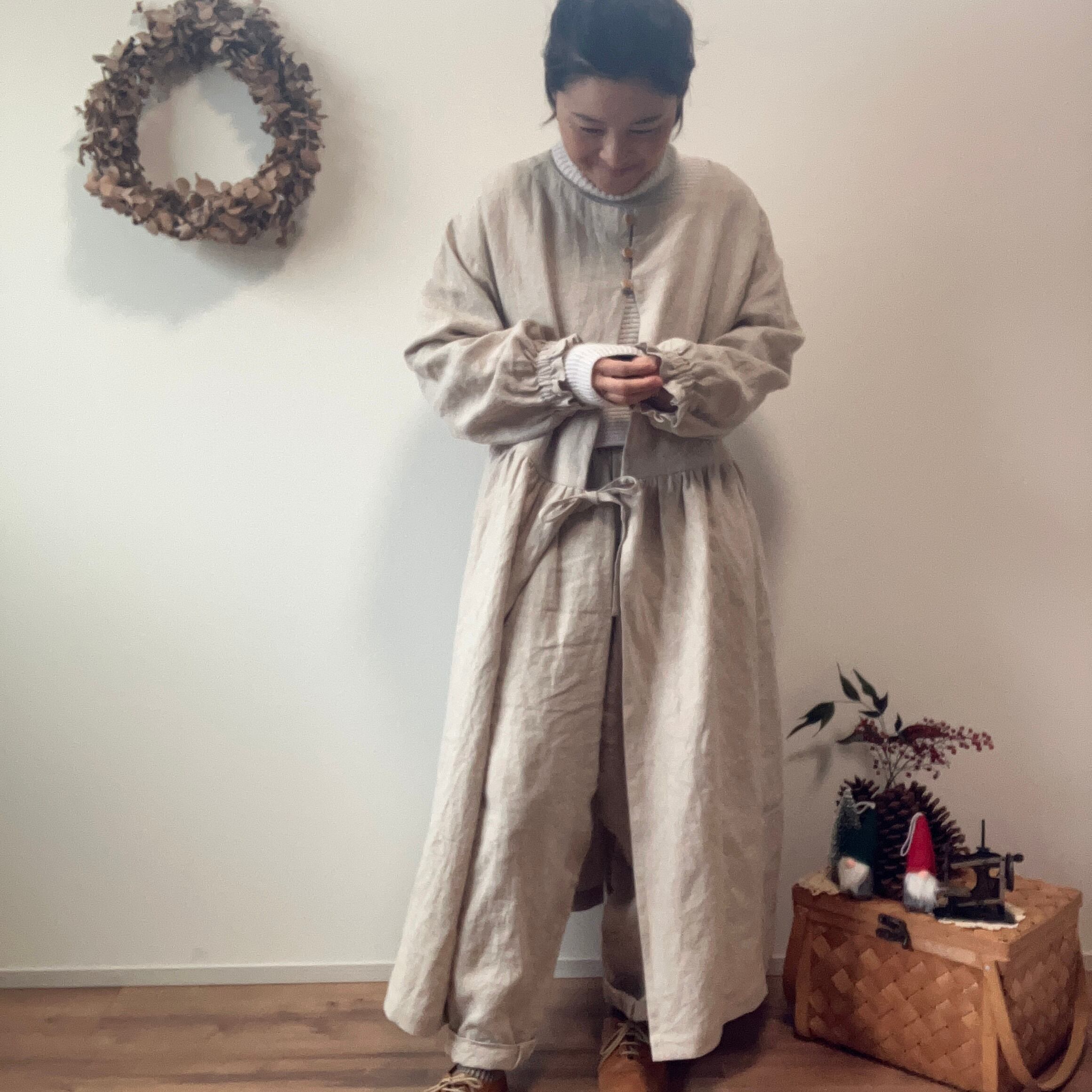 大きめサイズ【120丈】秋冬用♡割烹着ワンピース〈ホワイトベージュ〉