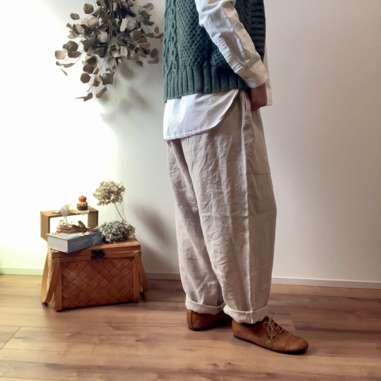 【コクーンパンツ】ウエスト普通 丈88(ホワイトベージュ)
