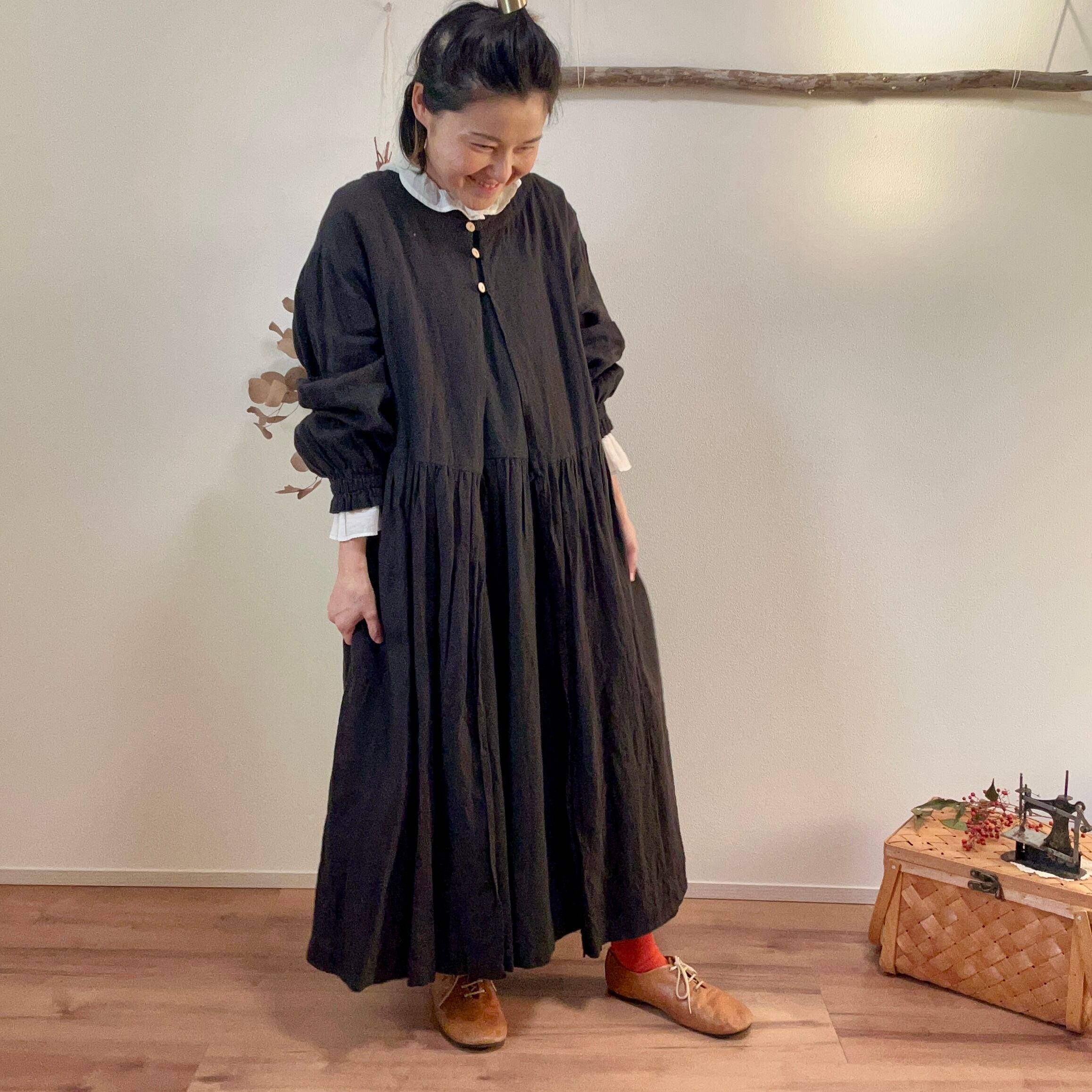 普通サイズ✴︎100丈✴︎〈ブラック〉薄手リネン割烹着ワンピース