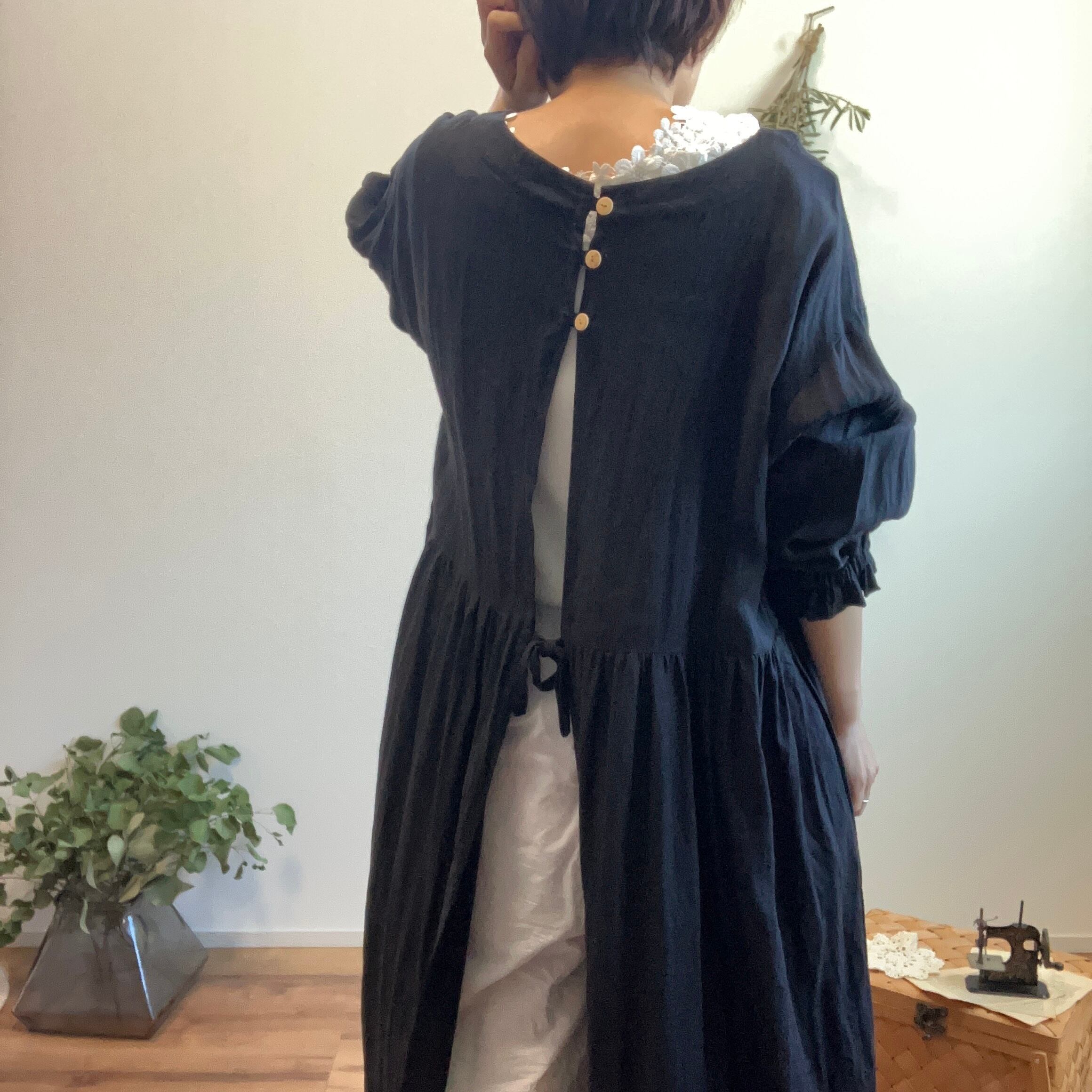 和美さん専用♡大きめサイズ✴︎100丈✴︎〈ブラック〉薄手リネン割烹着ワンピース